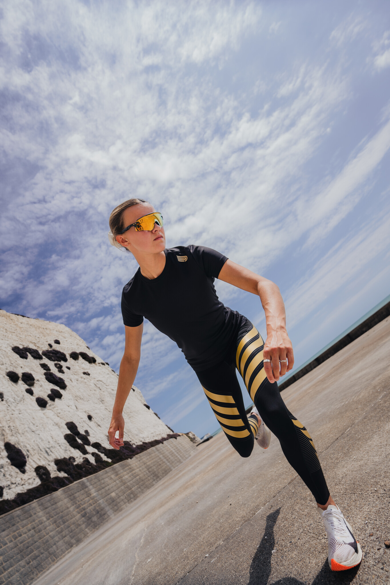The Pressio x She Races collection has been specifically engineered to meet the demands of triathletes and endurance athletes alike. It delivers unparalleled quality, using custom fabrications anatomically designed for the athlete. The collection features advanced technologies, including 4-phase moisture management, enhanced comfort, biodegradability, recycled yarns, and more.